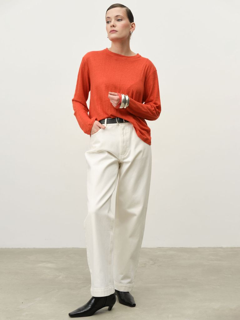 Лонгслив из льна в коралловом оттенке — это гармоничное сочетание комфорта и выразительного стиля. Легкая и дышащая ткань делает его идеальным вариантом для повседневной носки, а расслабленный крой обеспечивает свободу движений. Яркий цвет добавляет свежести и динамики в образ.Этот универсальный лонгслив легко впишется в любой гардероб. Он прекрасно сочетается с джинсами, светлыми брюками или юбками, создавая стильные и лаконичные комбинации для теплых и прохладных дней.