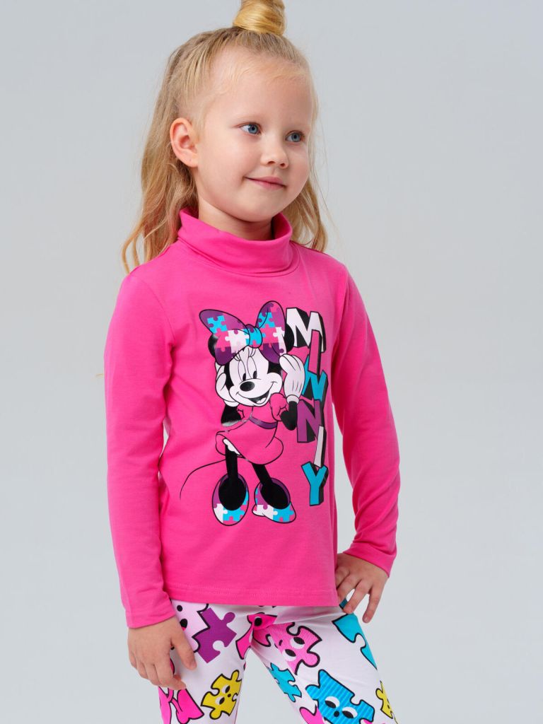 Модная розовая водолазка с принтом Минни Маус для девочек от PlayToday — удобное и стильное решение для школы и повседневных образов.