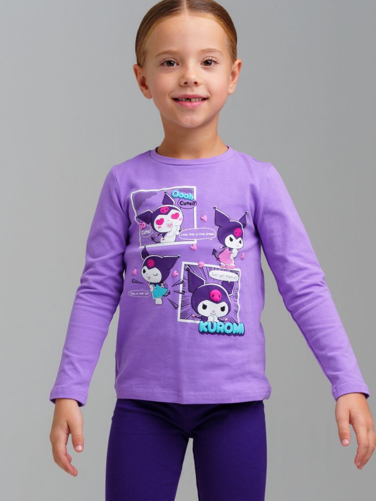 Футболка детская модная с длинным рукавом для девочки. Модель из качественного и приятного на ощупь трикотажа джерси. Лонгслив с высоким содержанием хлопка 95%. Благодаря наличию эластана в составе ткани изделие проще в уходе и держит форму. Модель из капсульной коллекции UNICORN KUROMI (ЮНИКОРН КОРОМИ). Соберите полный образ в едином стиле!