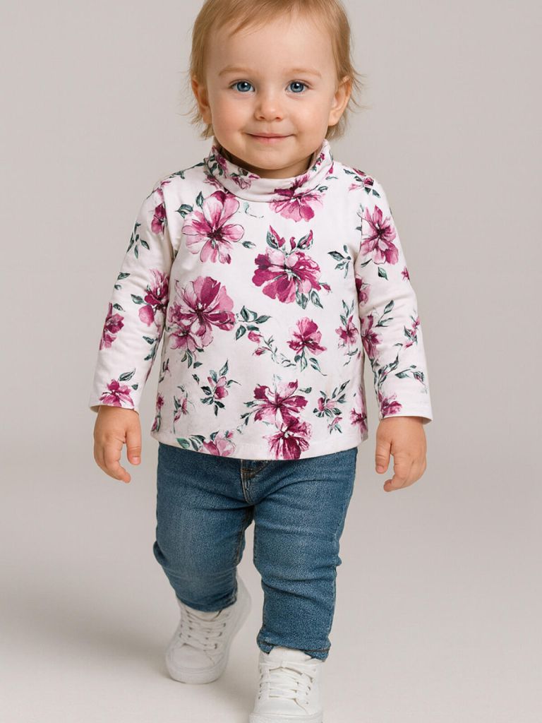 Этот детский трикотажная водолазка станет любимой базовой вещью в гардеробе девочки. Материал хорошо держит форму, сохраняет яркость рисунка и мягкость даже после многочисленных стирок.