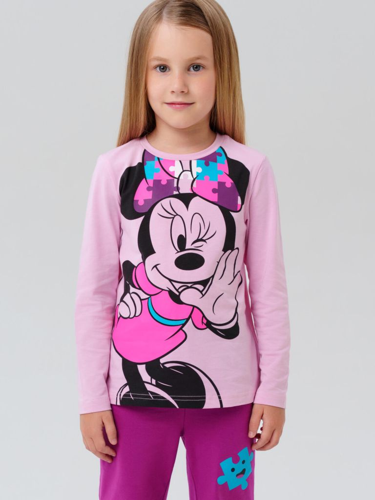 Модный трикотажный лонгслив с принтом Минни Маус для девочек от PlayToday — стильное решение для школы, сада и прогулок.