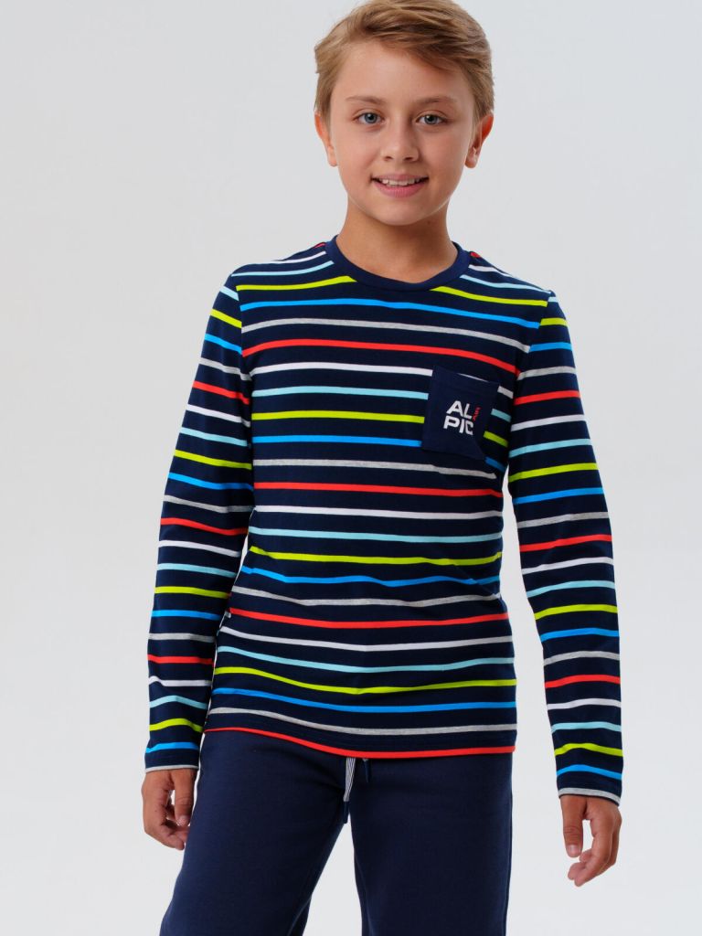 Трикотажный лонгслив в полоску для мальчика подростка от PlayToday. Современный лонгслив — удобная футболка с длинными рукавами, которая подойдёт и для школы, и для прогулок. Модель выполнена из мягкого эластичного трикотажа, ткань дышит, не раздражает кожу и обеспечивает комфорт в течение всего дня.