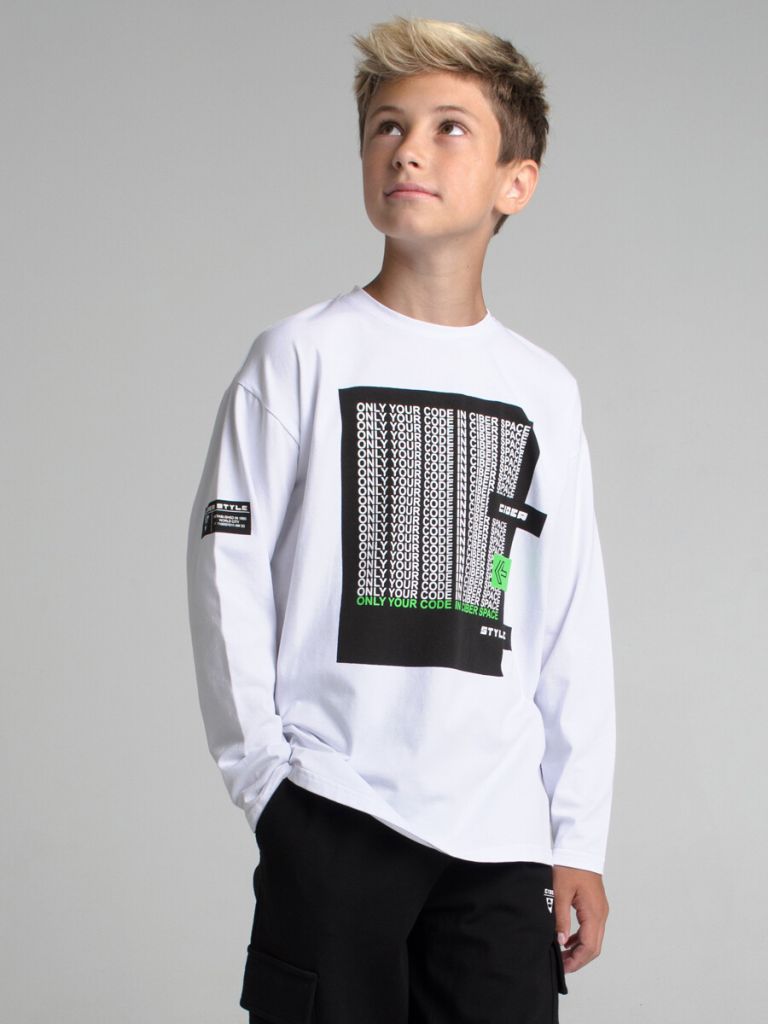 Лонгслив из качественного и приятного на ощупь трикотажа джерси. Высокое содержание хлопка 95%. Благодаря наличию эластана в составе ткани, изделие проще в уходе и держит форму. Принт сохраняет первоначальный вид даже после многочисленных стирок.