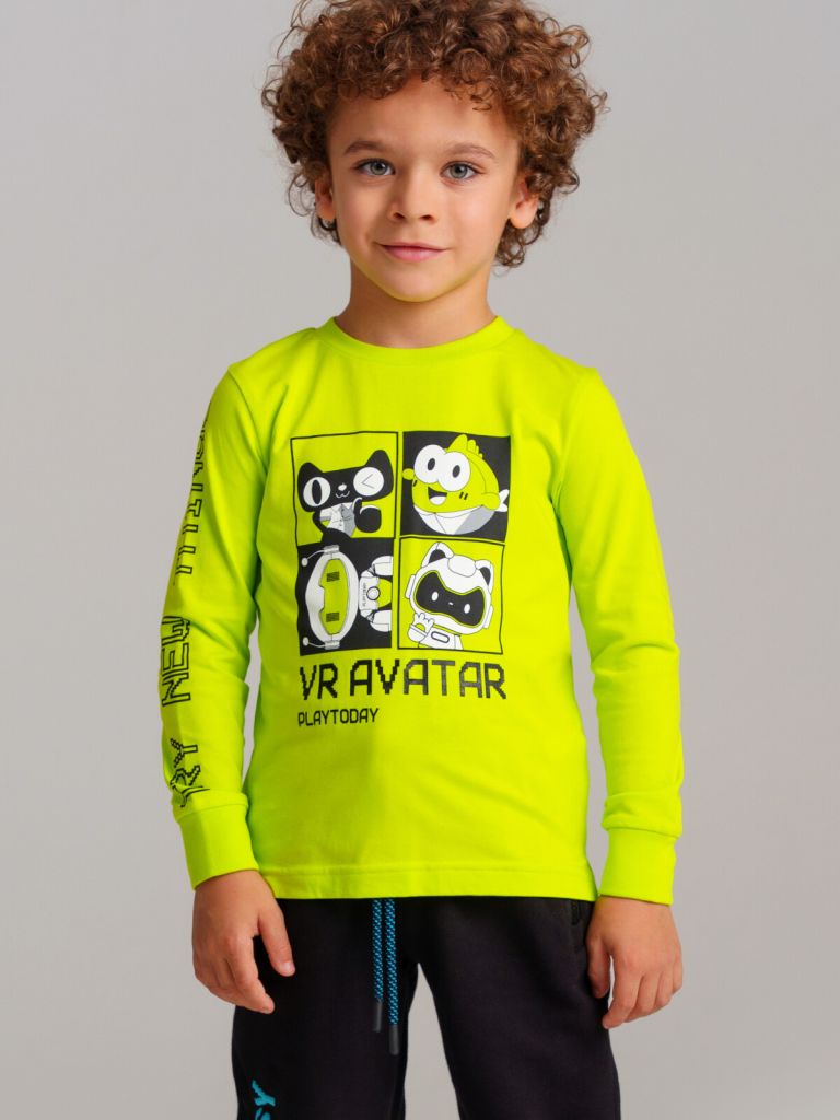 Футболка детская для мальчика. Футболка с длинным рукавом из качественного и приятного на ощупь трикотажа джерси. Лонгслив с высоким содержанием хлопка 95%. Благодаря наличию эластана в составе ткани изделие проще в уходе и держит форму. Модель из капсульной коллекции VR AVATAR (ВИАР АВАТЭР). Соберите полный образ в едином стиле! Футболка детская будет актуально для детского сада, в садик.