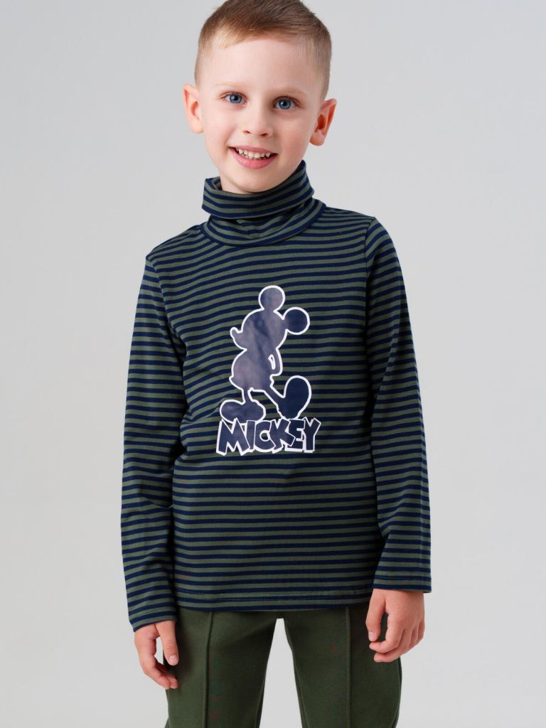 Детская водолазка в полоску для мальчика от PlayToday — универсальная базовая вещь в детский гардероб. Эта водолазка для мальчика выполнена из мягкого хлопка с добавлением эластана, что делает её удобной, дышащей и эластичной. Водолазка с длинным рукавом и высоким воротником защищает горло от ветра и холода, а стильный принт с любимым персонажем Disney — Микки Маусом — делает образ современным и модным.