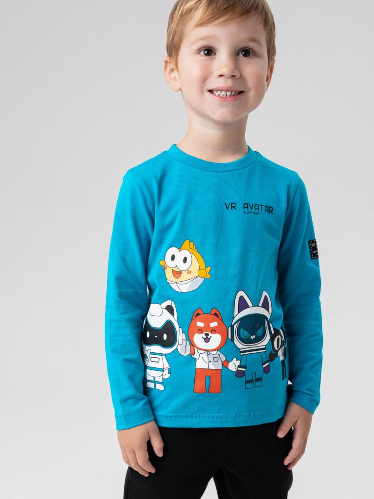 Футболка детская для мальчика. Футболка с длинным рукавом из качественного и приятного на ощупь трикотажа джерси. Лонгслив с высоким содержанием хлопка 95%. Благодаря наличию эластана в составе ткани изделие проще в уходе и держит форму. Модель из капсульной коллекции VR AVATAR (ВИАР АВАТЭР). Соберите полный образ в едином стиле! Футболка детская будет актуально для детского сада, в садик.