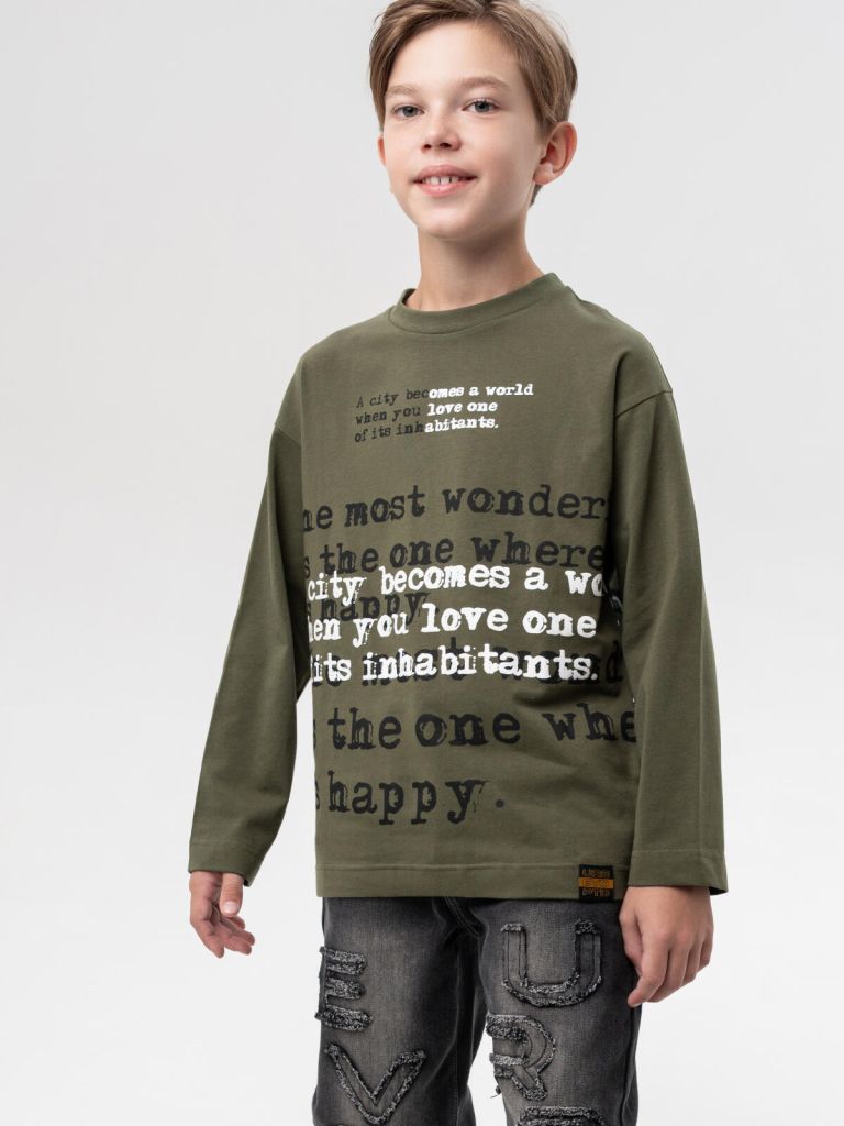 Стильный зелёный лонгслив оверсайз для мальчика подростка от PlayToday — практичная футболка с длинным рукавом для школы и прогулок. Модель выполнена из мягкого хлопкового трикотажа, который дышит, приятен к телу и безопасен для кожи ребёнка. Современный принт и удобный крой делают лонгслив стильным элементом подросткового гардероба.