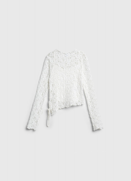Кружевной лонгслив с завязками для девочек, Белый