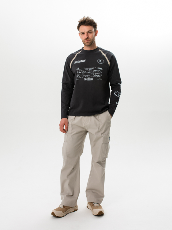 Remington All WORLD Gray — это мужской хлопковый лонгслив relaxed fit с двойными рукавами, созданный для жизни в городском ритме. Удобный, практичный и универсальный — он легко впишется в любой гардероб.