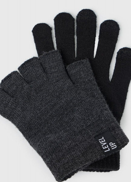 Перчатки: 85% Акрил, 13% Полиэстер, 1% Металлизированное волокно, 1% Эластан; Митенки: 85% Акрил, 14% Полиэстер, 1% Эластан