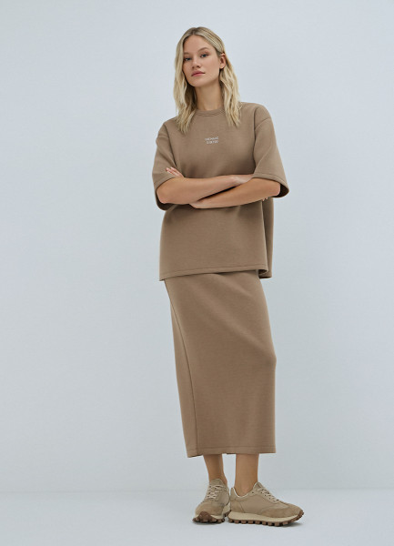 Юбка миди прямого кроя, Бежевый