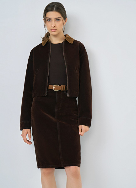 Джинсовая юбка с бархатным напылением, Коричневый
