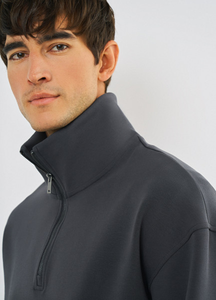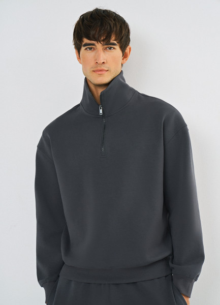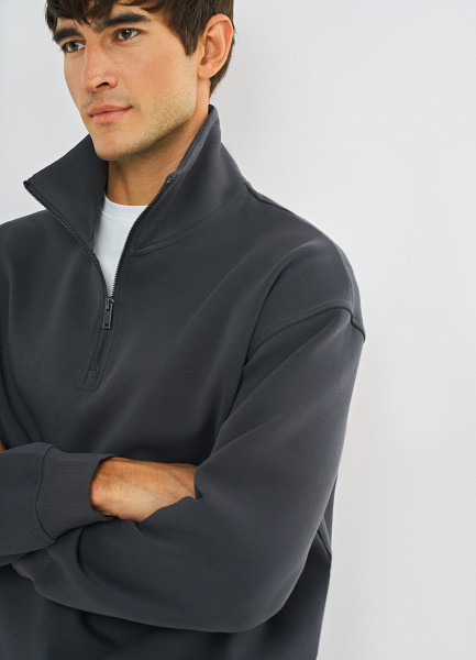 Джемпер с воротником-стойкой на молнии, Серый