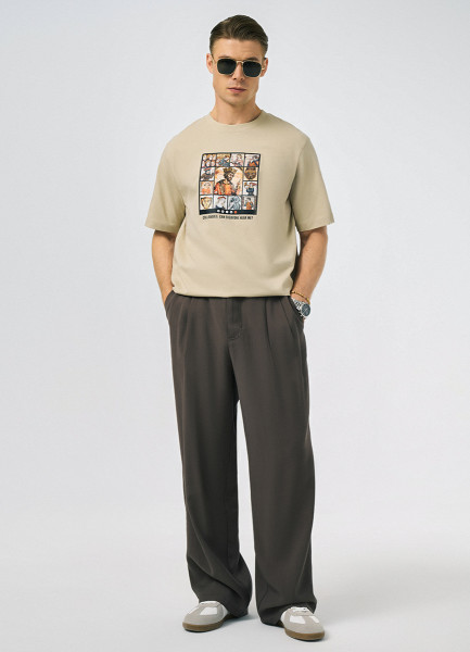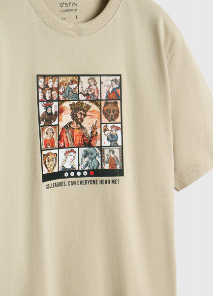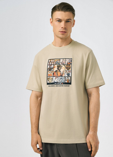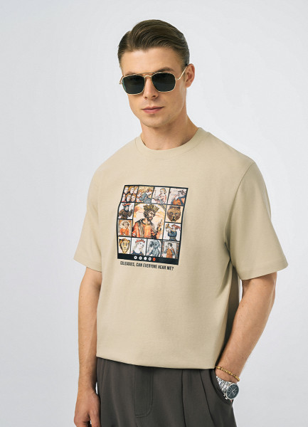 Футболка с арт-принтом, Бежевый
