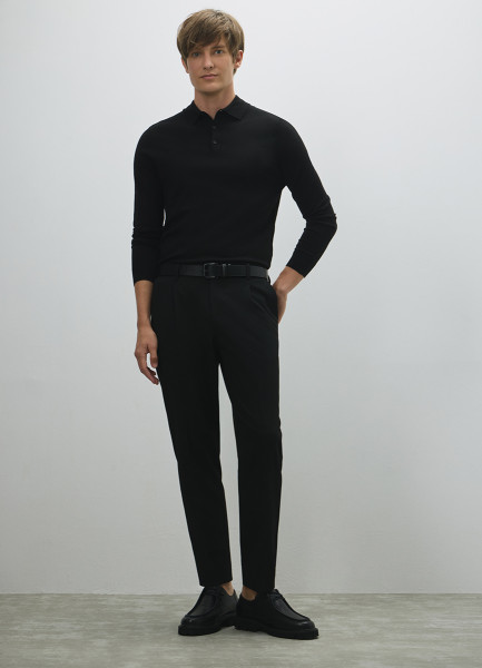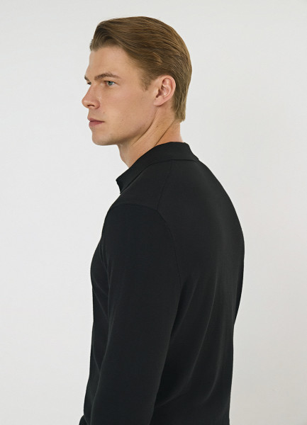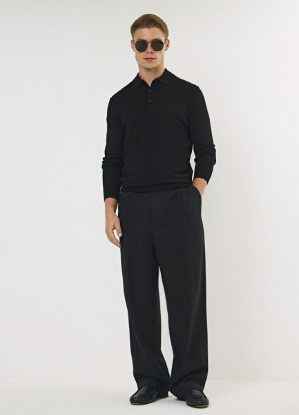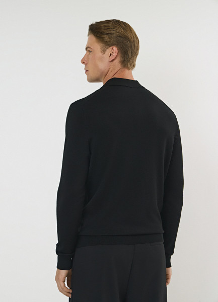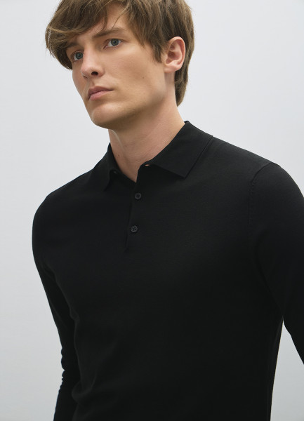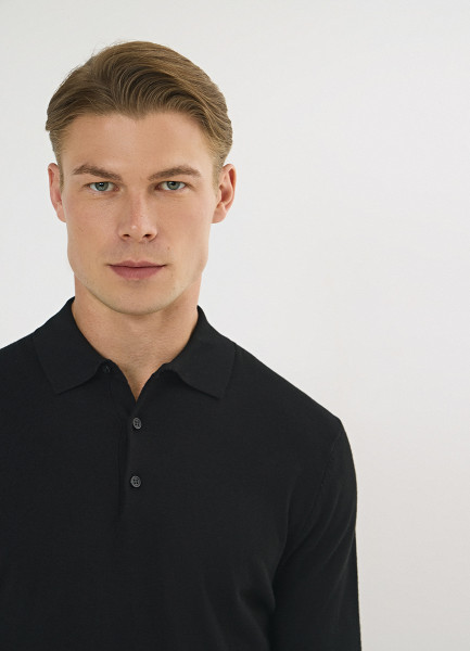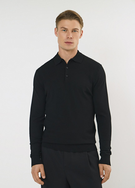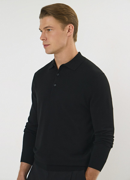 Вязаный джемпер-поло с длинным рукавом, Черный
