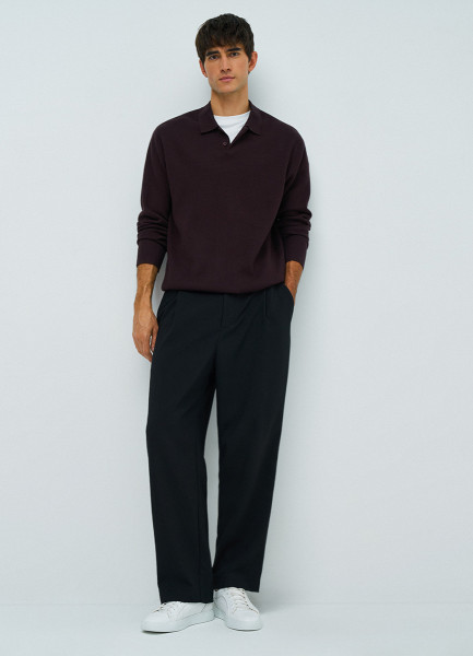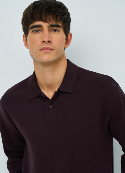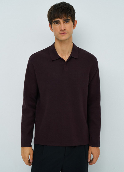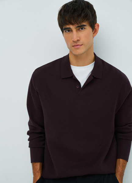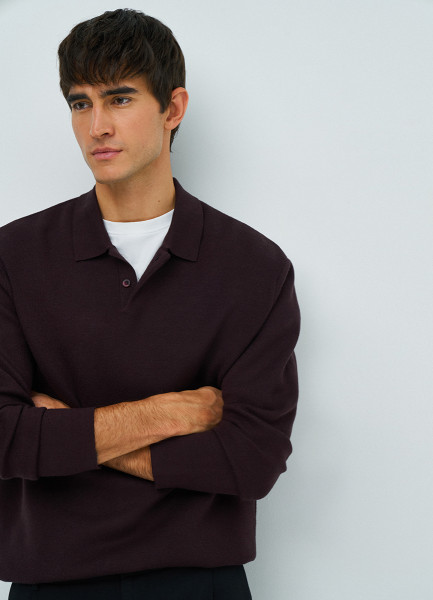 Вязаный джемпер-поло с длинным рукавом, Фиолетовый