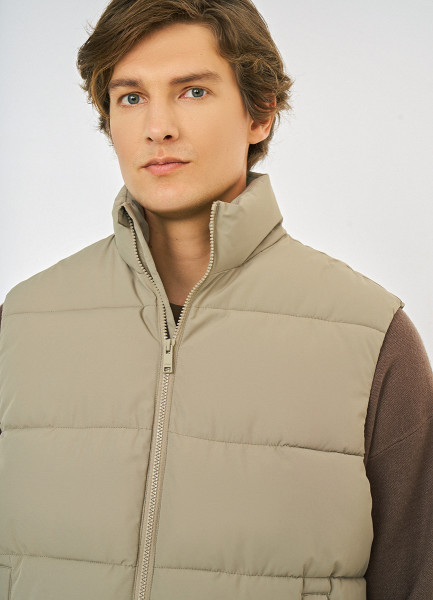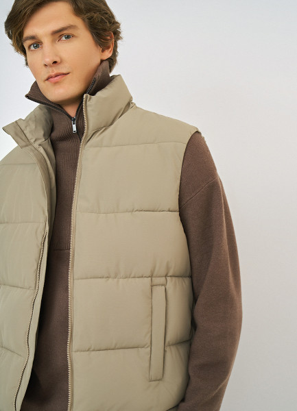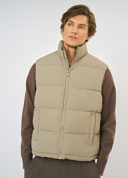 Стёганый утеплённый жилет с воротником-стойкой, Бежевый