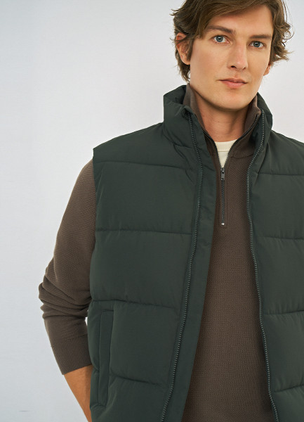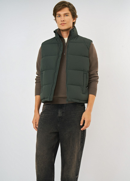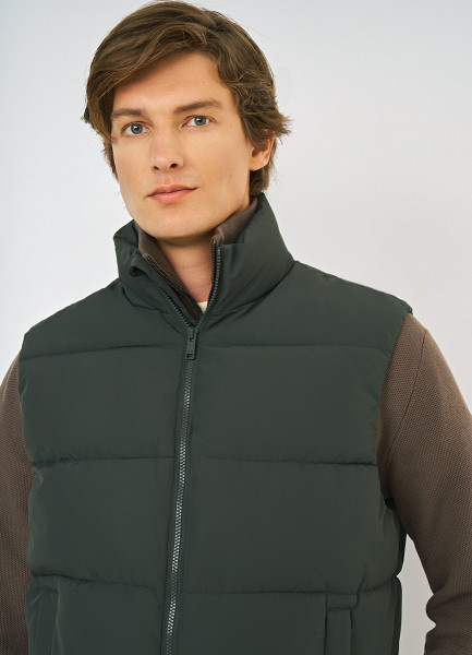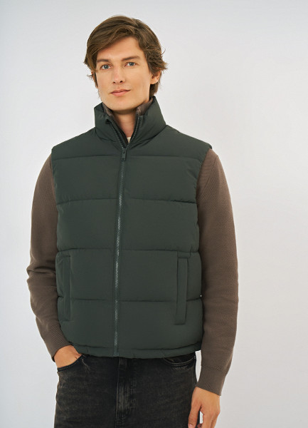 Стёганый утеплённый жилет с воротником-стойкой, Зеленый