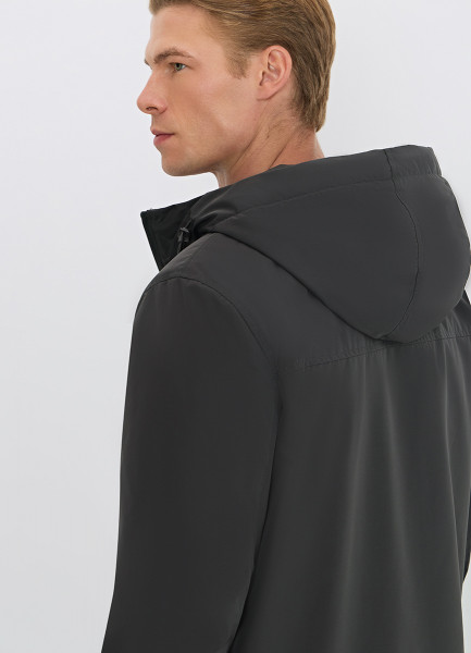 Утеплённая куртка с капюшоном из фактурной ткани, Серый