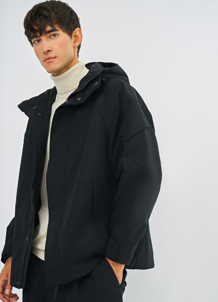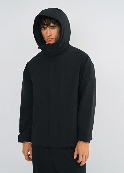 Утеплённая куртка с капюшоном из фактурной ткани, Серый