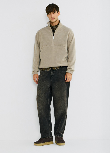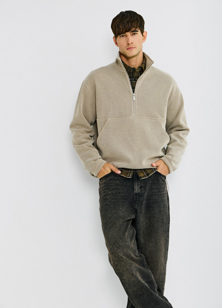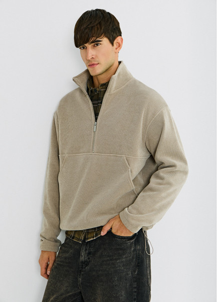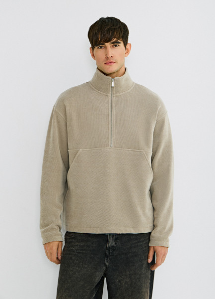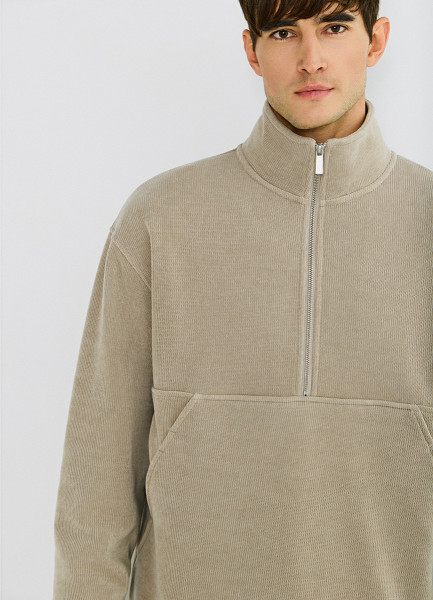 Свитшот с воротником-стойкой на молнии, Бежевый