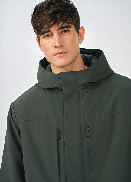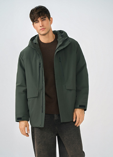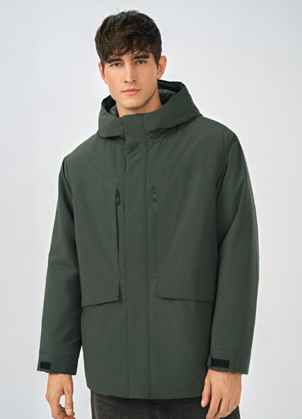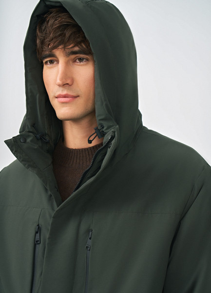 Утеплённая парка с капюшоном, Зеленый