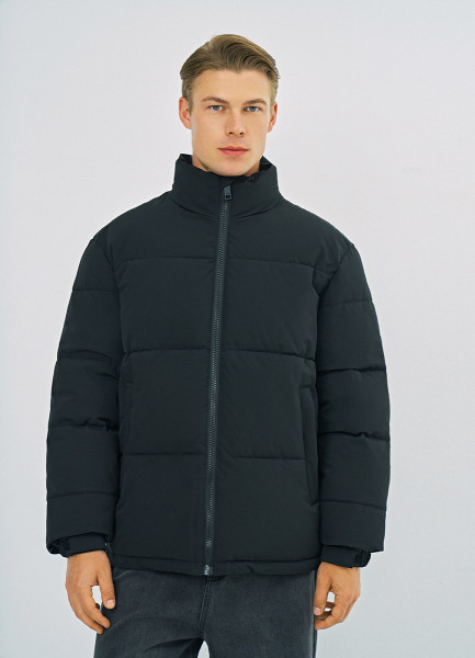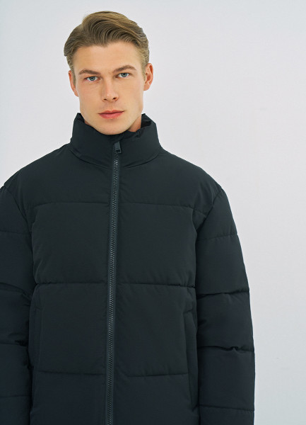 Утеплённая куртка с капюшоном из фактурной ткани, Серый
