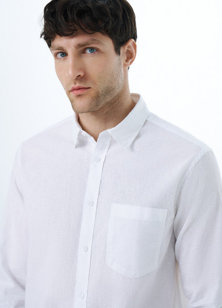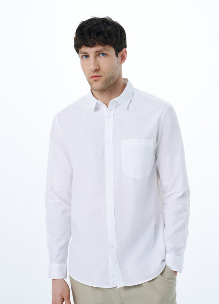 Трикотажная рубашка из фактурного полотна с коротким рукавом, Белый