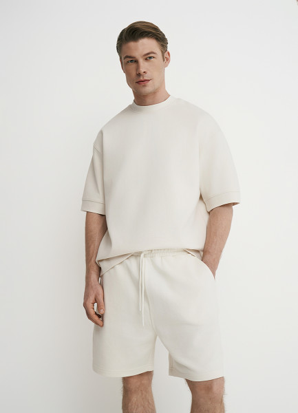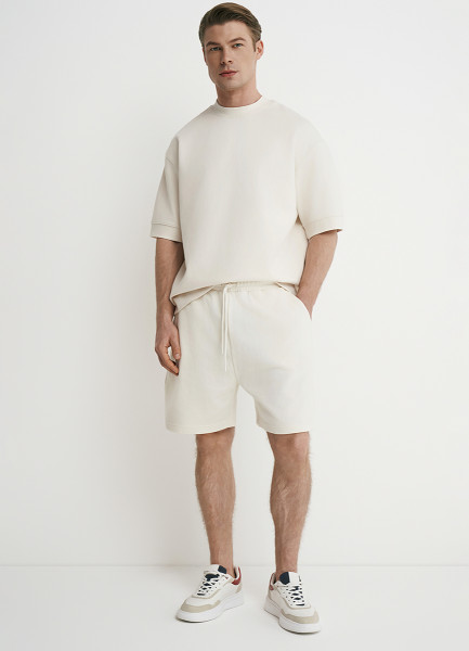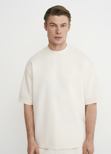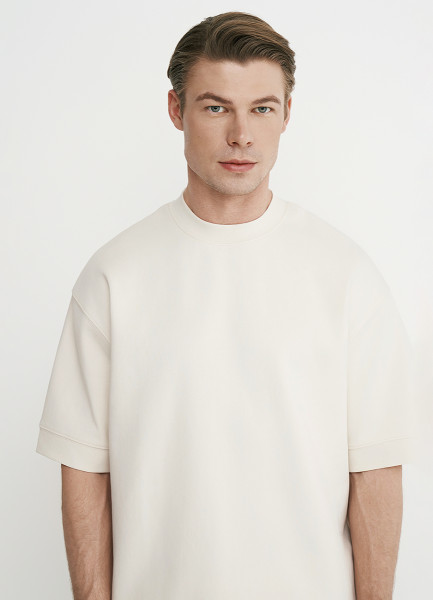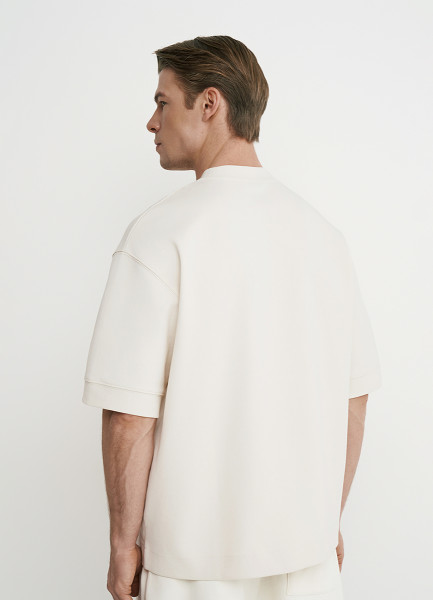 Трикотажная рубашка из фактурного полотна с коротким рукавом, Белый
