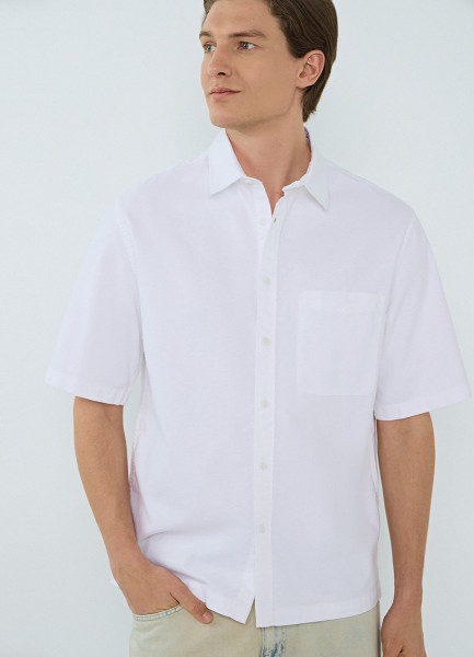 Рубашка из ткани оксфорд с коротким рукавом, Белый