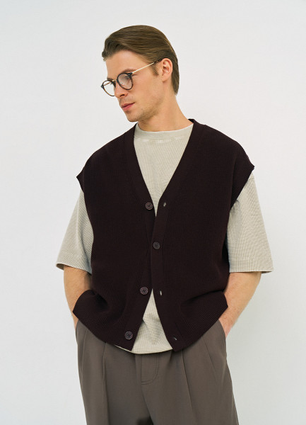 Вязаный жилет на пуговицах, Фиолетовый