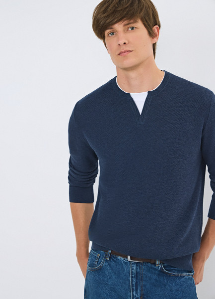 Текстурный джемпер с воротником хенли, Синий