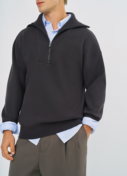 Джемпер с воротником-стойкой на молнии, Коричневый