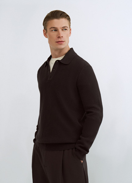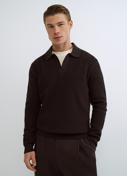 Текстурное вязаное поло, Коричневый