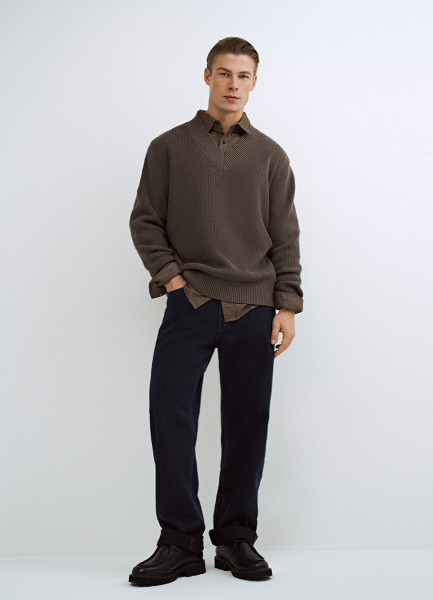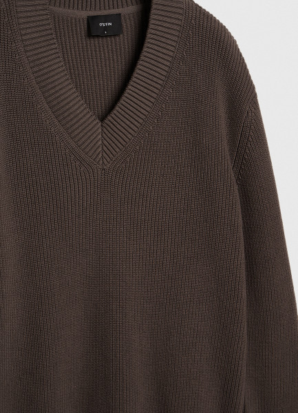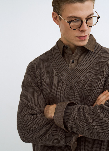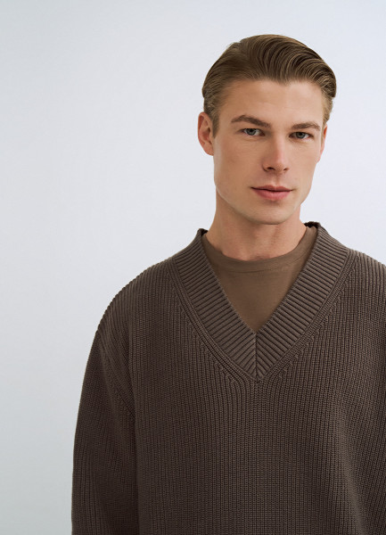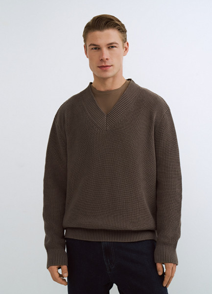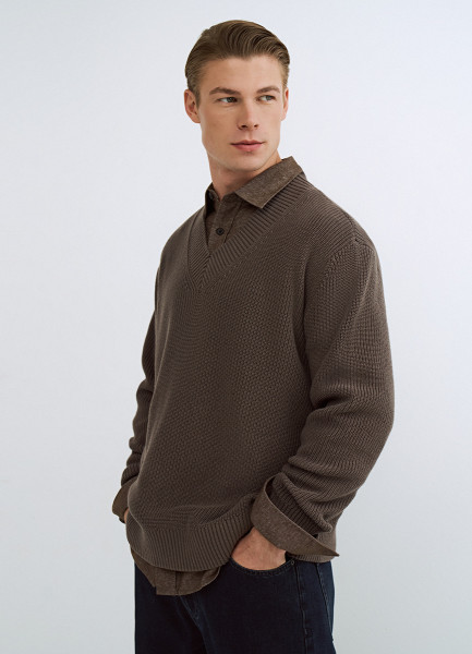 Текстурный джемпер с V-вырезом, Коричневый