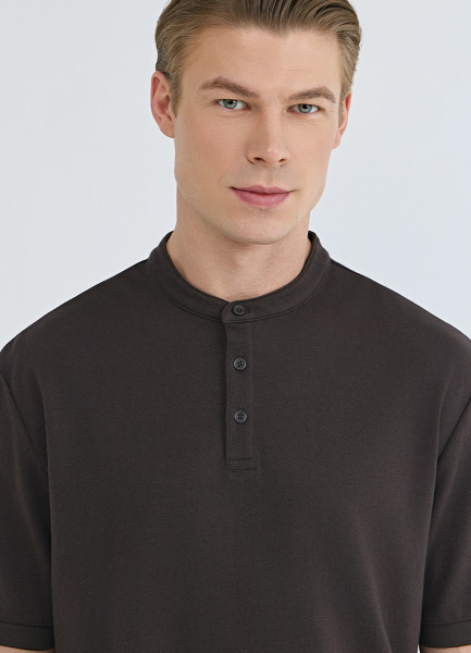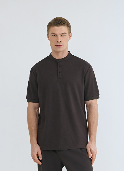 Поло с воротником-стойкой, Коричневый