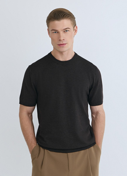 Вязаная футболка из пряжи с вискозой, Коричневый