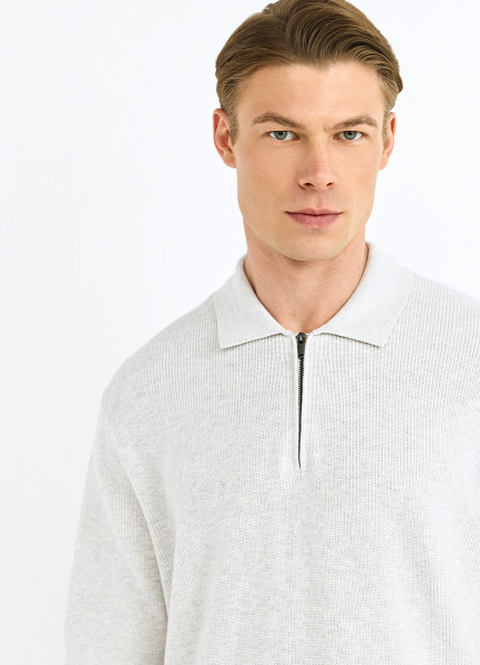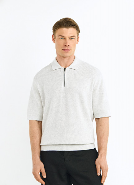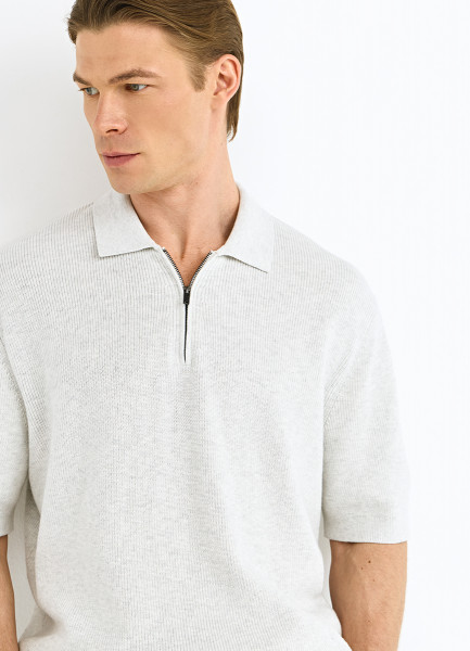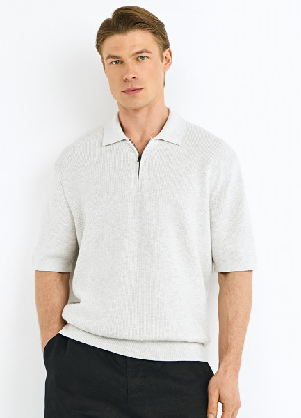 Поло из текстурной ткани с молнией, Серый