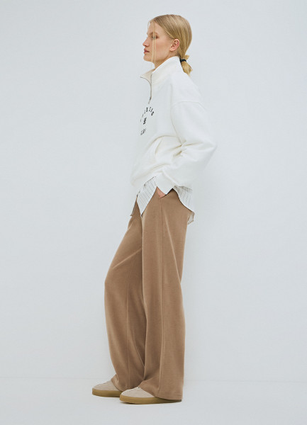 Базовые широкие брюки с эффектом стирки, Бежевый