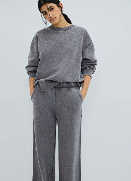Базовые широкие брюки с эффектом стирки, Бежевый