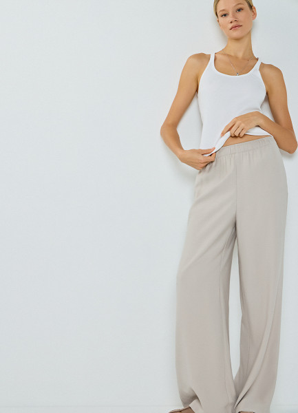 Базовые широкие брюки с эффектом стирки, Бежевый