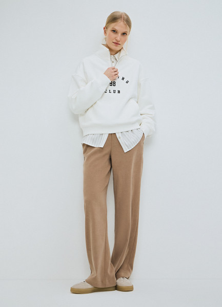 Прямые брюки с эластичным поясом, Бежевый