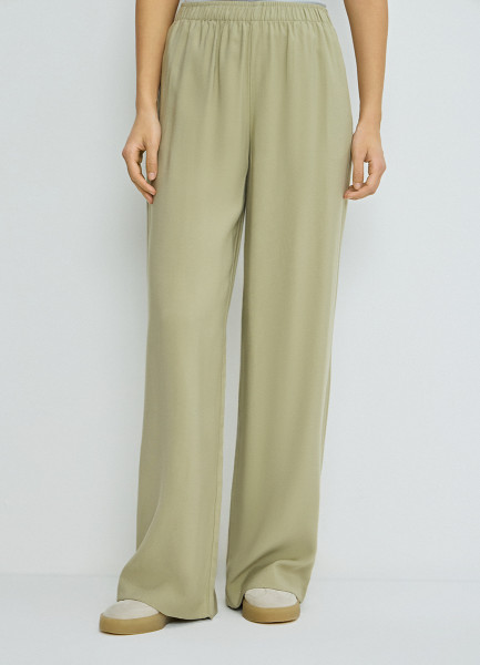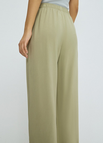 Прямые брюки с поясом на резинке, Зеленый