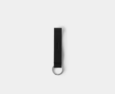 Брелок выполнен из натуральной кожи с естественной лицевой поверхностью, дополнен тиснением с логотипом бренда и металлическим кольцом для ключей.