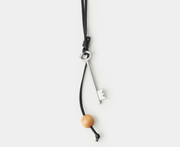 Брелок из натуральной кожи с ключом и деревянной бусиной. Носите на шее как кулон или крепите к сумке.