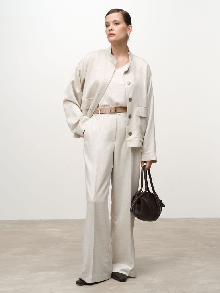 Бомбер из вискозы бежевыйПреимущества:• Натуральная вискоза – дышащий и мягкий материал, комфортный в любое время года.• Лёгкость и свобода – не стесняет движений, приятен к телу, идеально садится по фигуре.• Универсальный оттенок – бежевый подходит ко всему, делает образ светлым и стильным.• Многофункциональность – подходит как для города, так и для путешествий или офиса.• Простота ухода – не требует сложной чистки, легко стирается и быстро сохнет.С чем и как носить:• Кэжуал-лук – с белой футболкой, джинсами и кедами для расслабленного образа на каждый день.• Современный офис – с классическими брюками, топом и лоферами.• Романтичный стиль – накинуть поверх платья с лёгкими босоножками или балетками.• Спортивный шик – с лосинами, худи и кроссовками.Бежевый бомбер – это базовая вещь, которая легко впишется в любой гардероб. Добавь немного мягкой элегантности в свой стиль – и будь уверена в себе в любой ситуации.