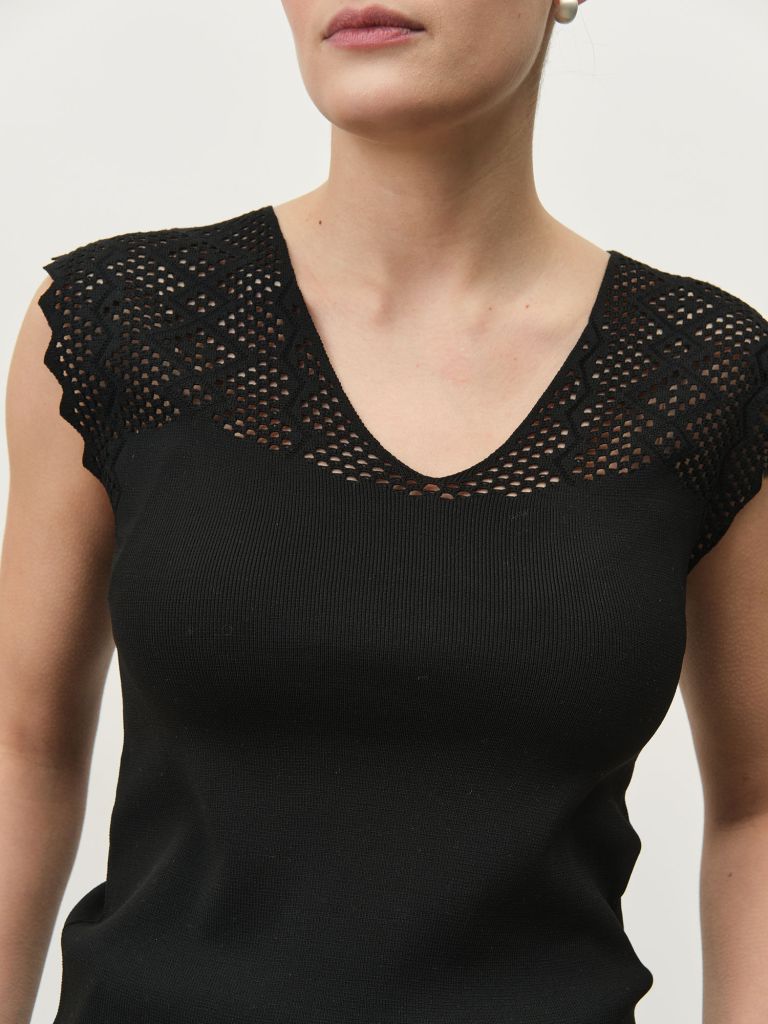 Элегантная женская блузка из мягкой вискозы – стильное решение для любого случая. Черный цвет придает образу утонченность, а изящная ажурная вставка на плечах добавляет женственности и легкости. Приятный к телу материал обеспечивает комфорт в течение всего дня.Эта блузка легко сочетается с классическими брюками, юбками и джинсами, позволяя создавать как деловые, так и повседневные образы. Идеальный вариант для офиса, прогулок или вечерних встреч, где важна элегантность и удобство.