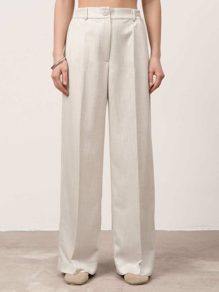Бежевые брюки из вискозы — легкий и стильный вариант для любого сезона. Натуральная вискоза приятна к телу, обеспечивает комфорт в течение всего дня. Мягкая и дышащая ткань обеспечивает комфорт и свободу движений. Нейтральный бежевый оттенок легко сочетается с любым гардеробом. Универсальный крой подходит как для повседневных, так и для более элегантных образов. Носите с рубашкой, майкой или жакетом — каждый раз будет по-новому.