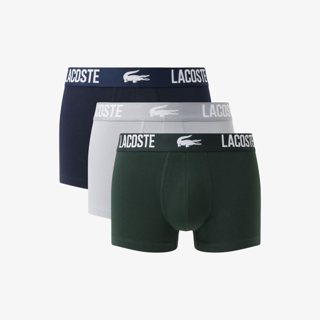 Плавки из эластичного хлопка в 3 упаковке \ Эластичный трикотаж из хлопка и эластана \ Удобный, поддерживающий крой при любых обстоятельствах \ Жаккардовый пояс с логотипом Lacoste и крокодиловой кожей \ Нижнее бельё возврату не подлежит \ Материал: 95