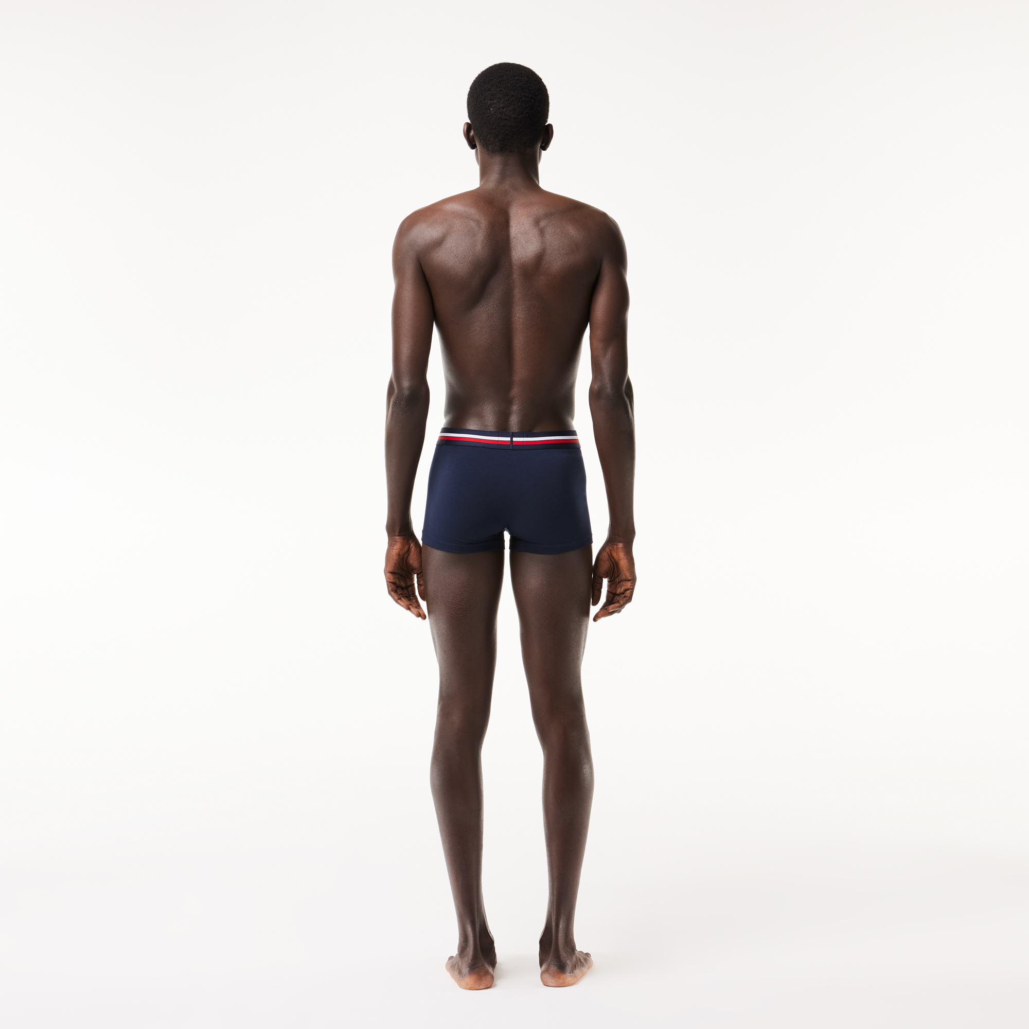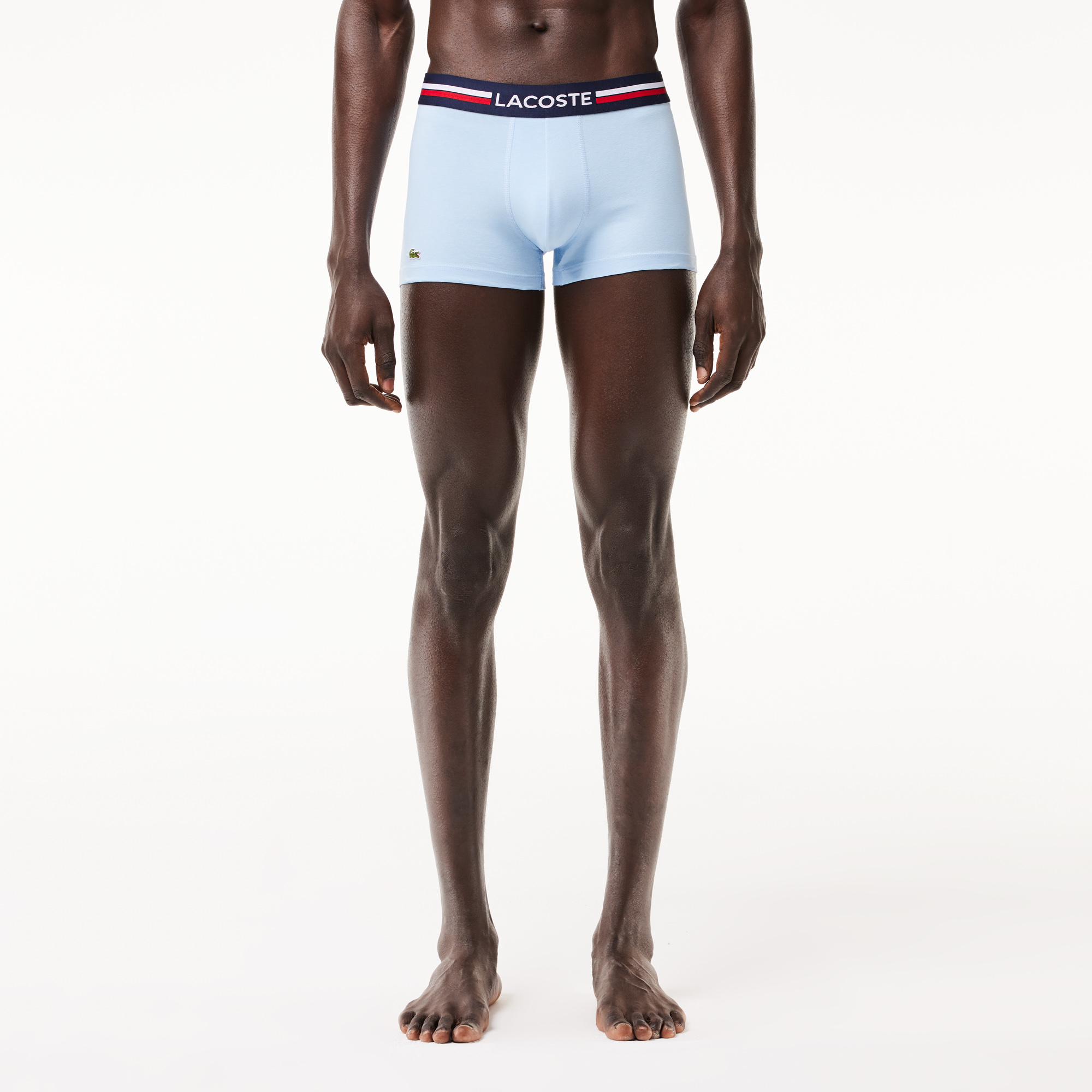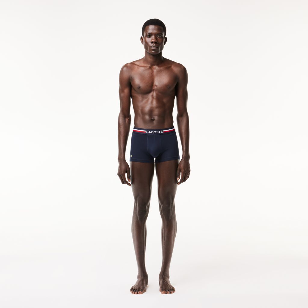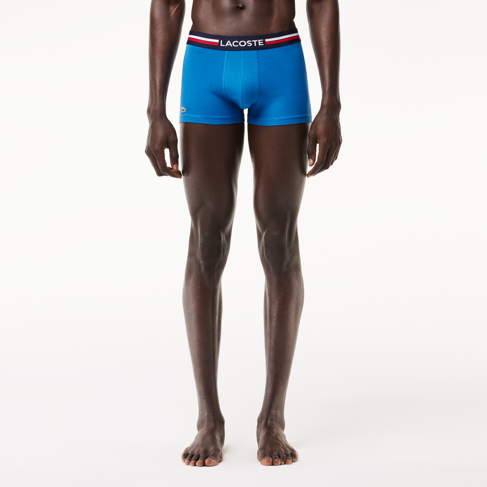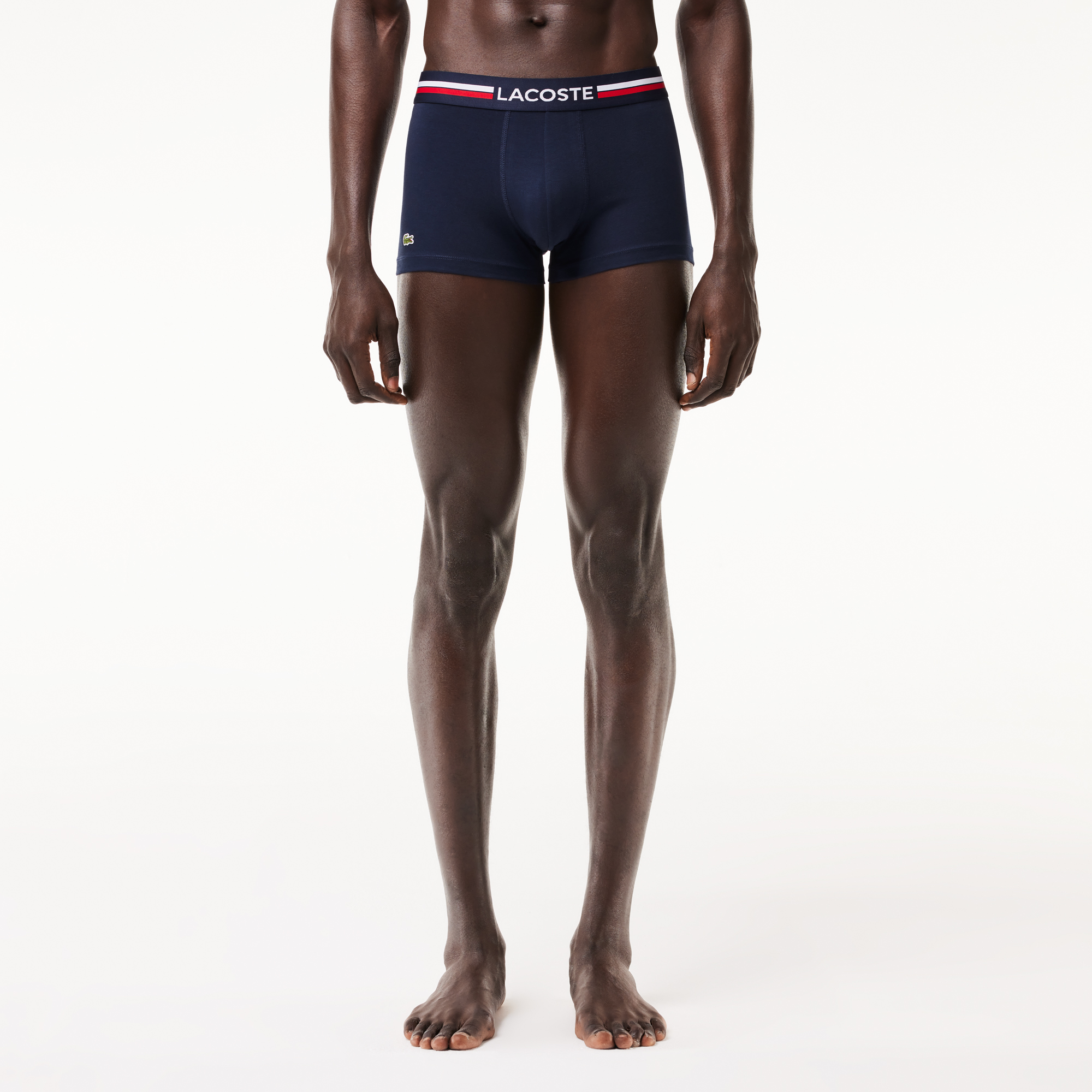 Трехцветные плавки на талии из 3 комплектов \ Трехцветный эластичный пояс с логотипом бренда Lacoste\ Посадка обеспечивает комфорт и поддержку в любое время \ Нижнее бельё возврату не подлежит \ Материал: 95% хлопок 5% эластан